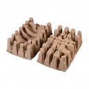 纸浆模塑是一种立体造纸技术。它以废纸为原料,在模塑机上由特殊的模具塑造出一定形状的纸制品。纸浆模塑,除作餐盒、餐具外,更多做工业缓冲包装,发展十分迅速。